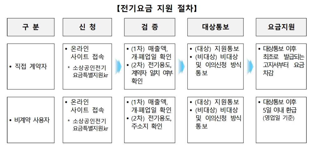 소상공인 전기요금 특별지원 신청방법